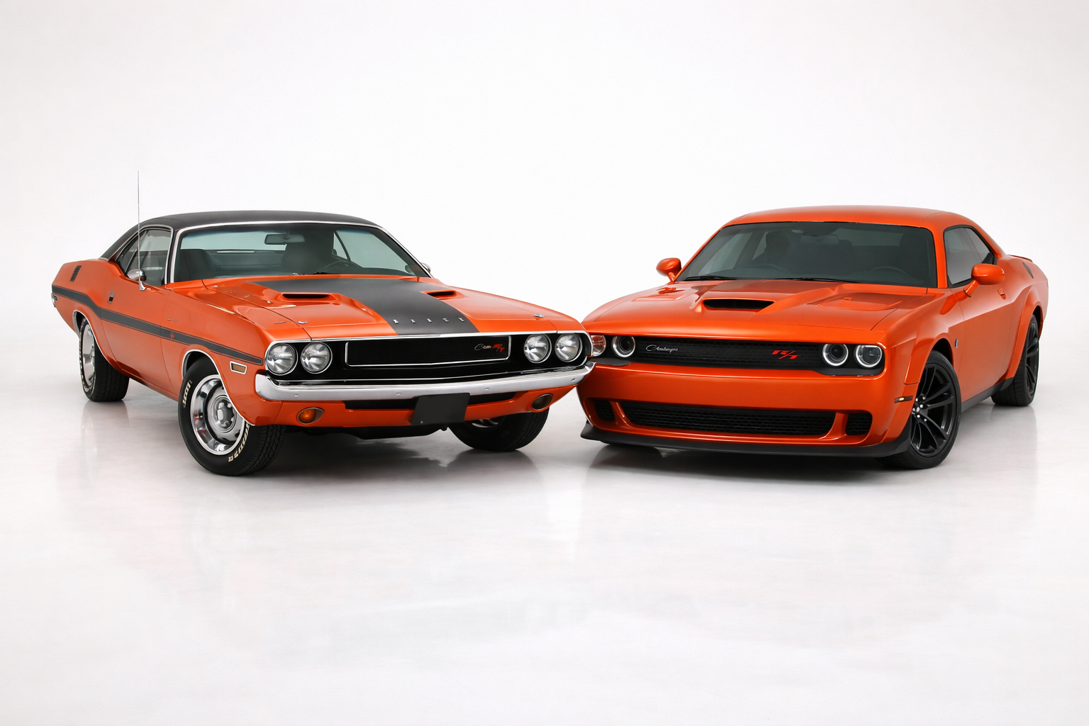 O Dodge Challenger, um verdadeiro ícone do estilo muscle car, foi lançado pela primeira vez em 1970. Com seu design robusto e linhas marcantes, ele se destacou imediatamente. O que é fascinante é que, ao olhar para o modelo atual, lançado em 2008, percebe-se que muitas das características do design original foram mantidas. A grade frontal imponente, os faróis angulosos e a silhueta muscular são elementos que fazem o coração de quem é apaixonado pelos carros antigos bater forte. Com certeza, o novo Challenger é uma viagem no tempo, trazendo de volta toda a potência e ousadia dos anos 70.